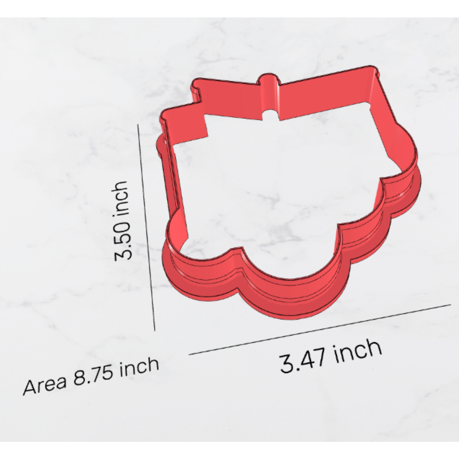 The cutter measurements are 3.5 inches wide and 3.39 inches tall.